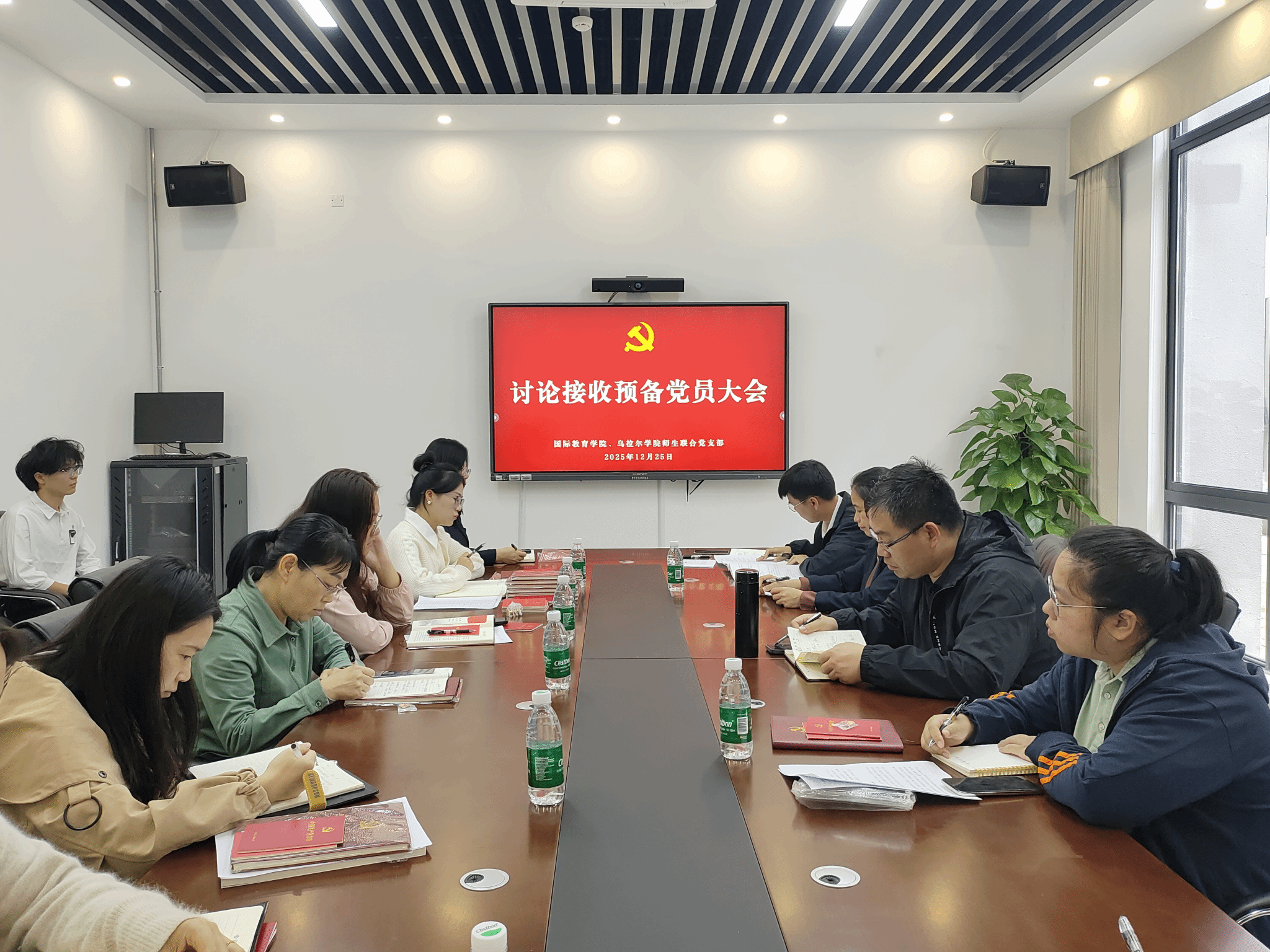 2025年12月25日,国际教育学院师生联合党支部召开讨论接收预备党员大会,研究接收秦阳同学为中共预备党员事宜。